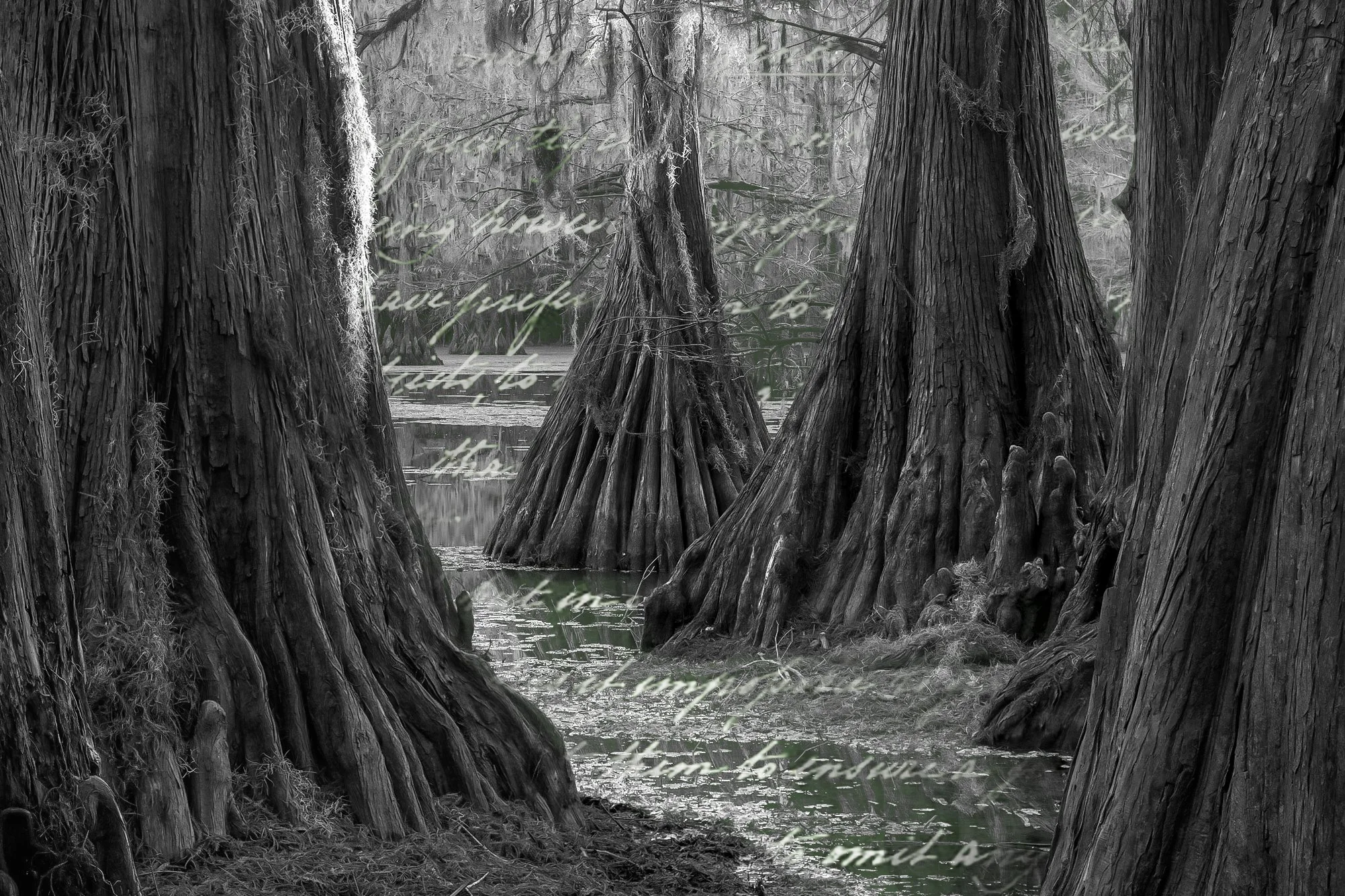 Fading Roots examines this erasure, layering quiet landscapes with historic, present, and projected future maps of wetland loss, interwoven with excerpts from naturalists Charles Darwin and Eugene Odum. These embedded maps and texts visualize the fragility of these vanishing environments. If this trajectory continues, it's estimated that over 1.34 million acres of wetlands in the southern United States will disappear within the next 20 years.